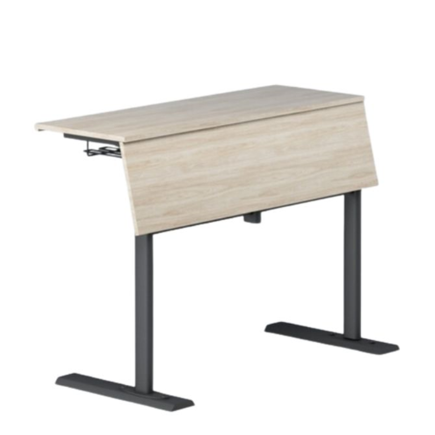 2-seater amphitheater table, crafted from sturdy MDF with iron frame and legs for durability. The table features a wooden leg-cover of the same material, ensuring comfort during extended use. Perfect for lecture halls and seminar rooms, this table provides a functional and comfortable workspace for two.