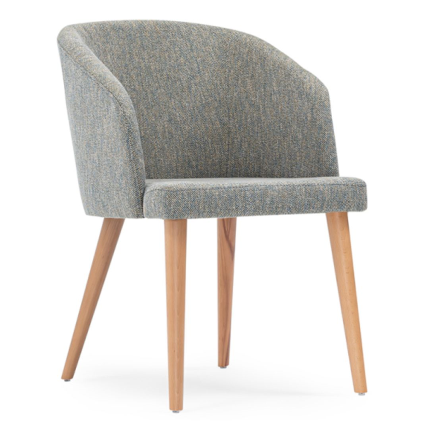 Visitor armchair padded and covered with fabric, combining comfort and elegance with its solid wood legs. Perfect for reception areas, this chair offers a warm welcome and modern aesthetics.